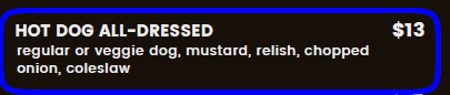 HOT DOG All Dressed - 내가 주문한 메뉴![]() 잘못된 선택이었음. 돈으로 보나, 맛으로 보나 후회스러움. |
