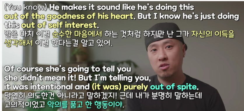 - out of spite : 악의로부터